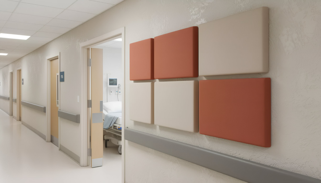 • Fabric Wall Panels: Provide targeted absorption in patient rooms, corridors, and waiting areas to reduce reverberation.